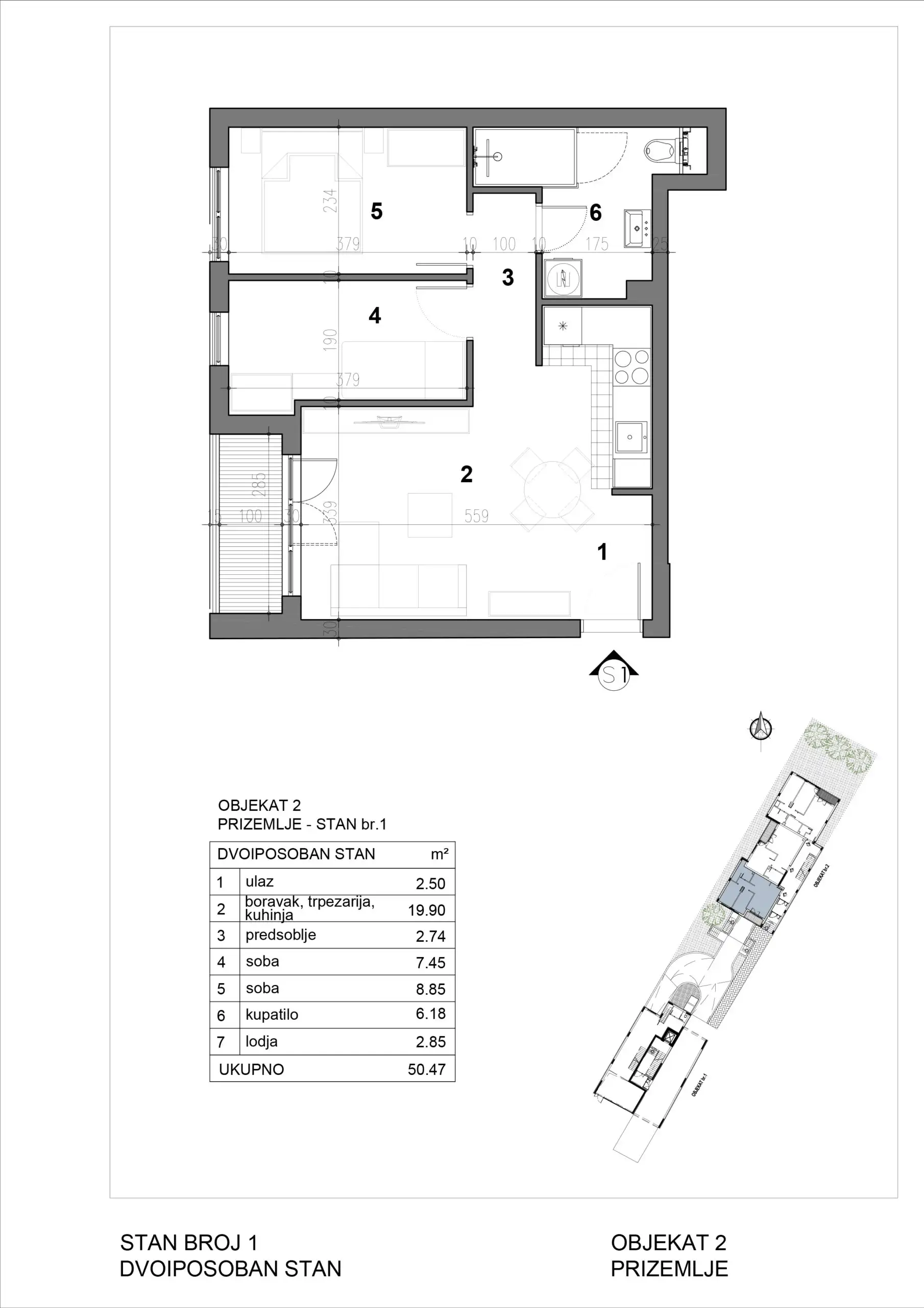 | Prizemlje | Stan 01 | 50.47 | 2600€/m2 | dvoiposoban | Prodato | Pogledajte nacrt |