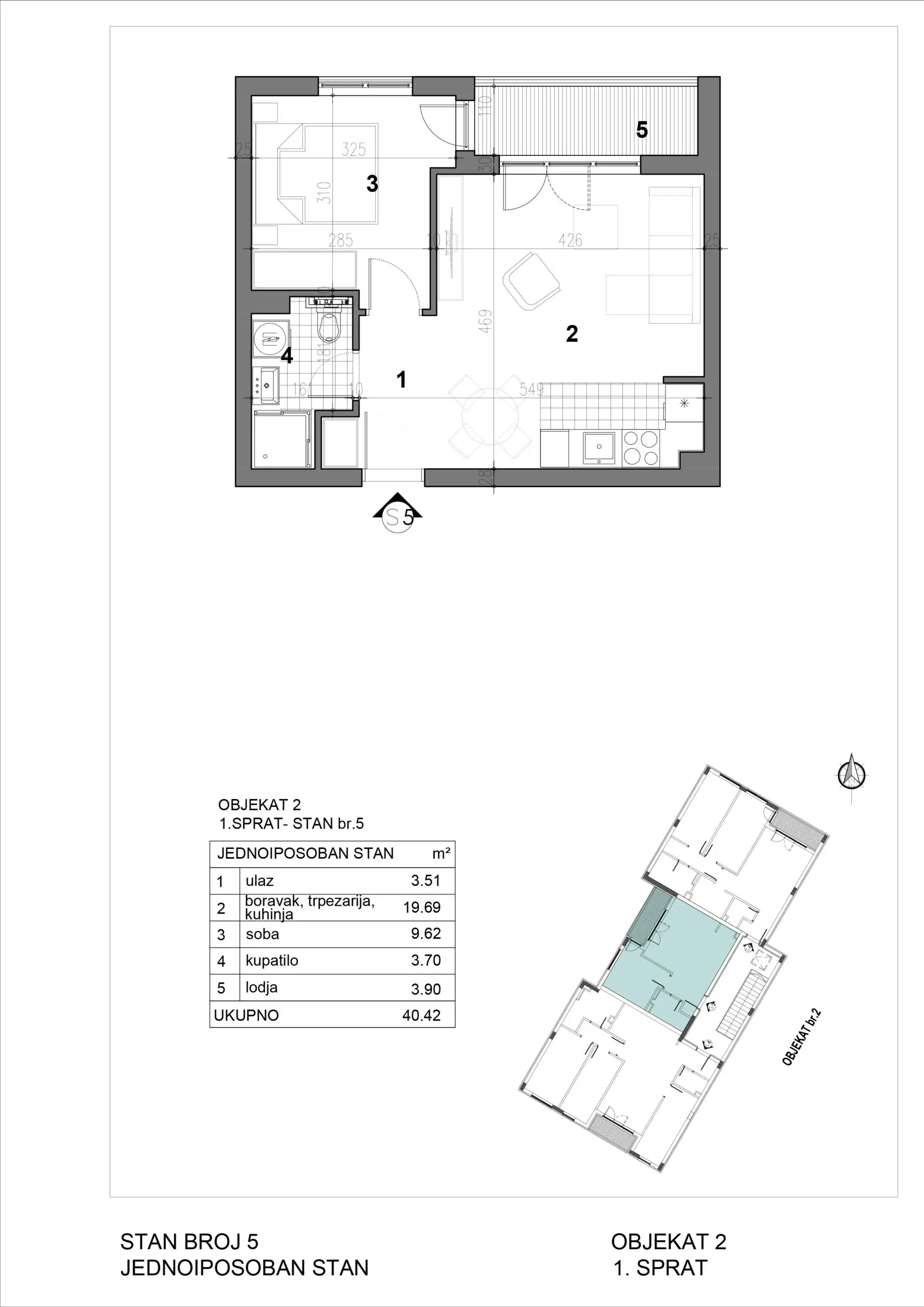 | I sprat | Stan 05 | 40.42 | 2600€/m2 | jednoiposoban | Prodato | Pogledajte nacrt |