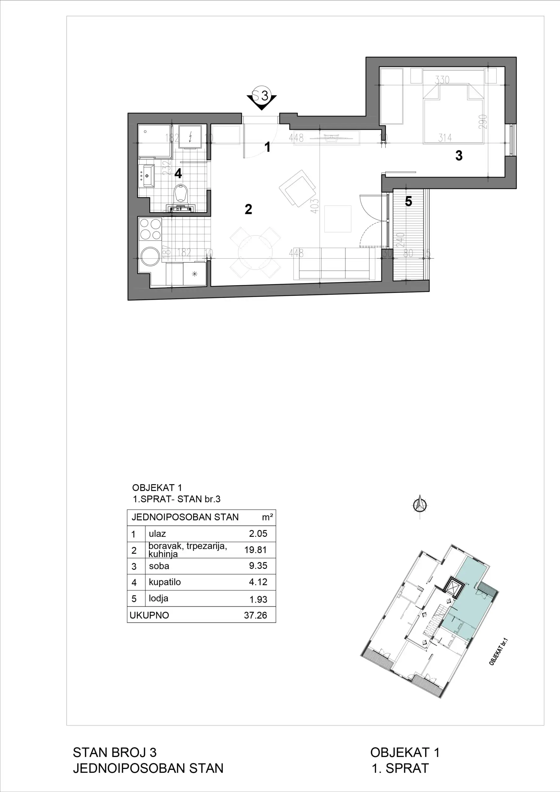 | III sprat | Stan 09 | 37.26 | 2600€/m2 | jednoiposoban | Prodato | Pogledajte nacrt |